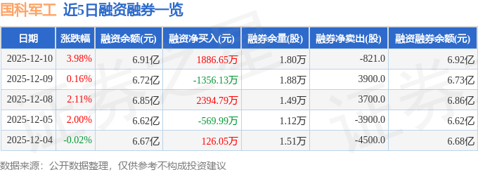 证券之星音讯,到2025年12月10日收盘,国科军工(688543)报收于59.06元,上涨3.98%,换手率13.18%,成交量15.29万手,成交额9.0亿元。