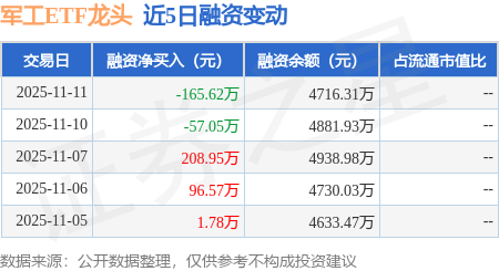 证券之星音讯,11月11日,军工ETF龙头(512680)融资买入439.23万元,融资归还604.85万元,融资净卖出165.62万元,融资余额4716.31万元。